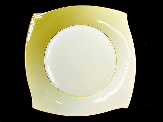 > 3QV売切!税無し☆ナルミ★スクエアディナー皿★フォルテ★ゴールドライン★約33cm★グリーン★洋食器★現状★現品限り★1025-6