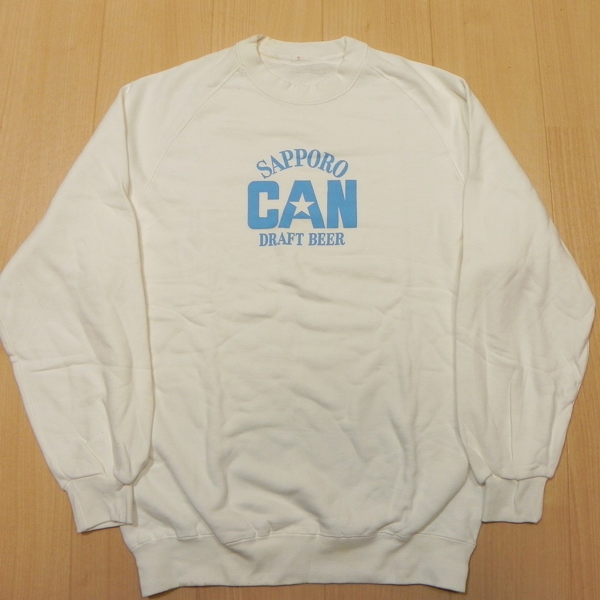 > 当時物 未使用品 サッポロビール「SAPPORO CAN DRAFT BEER」日本製 トレーナー スウェット 白 長期保管品 汚れ有り ★h