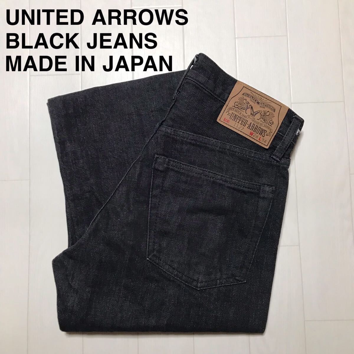 > 日本製 ユナイテッドアローズ ブラックデニム ジーンズ デニムパンツ 隠しリベット 赤耳 ドーナツボタン ボタンフライ 黒