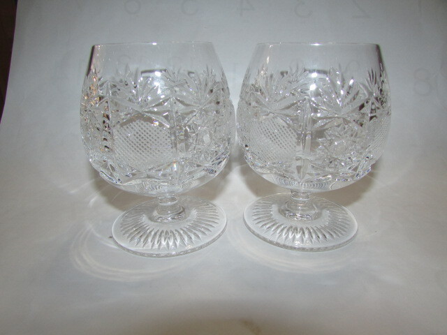 - 即決商品・底にVと銘がある・・型と手でカットされた・・とても綺麗なブランデ-グラス2客・・美品