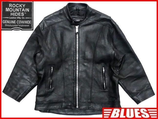 - 即決★ROCKY MOUNTAIN HIDES★メンズL レザーライダースジャケット ロッキーマウンテン ブラック 本革 シングル 本皮 パンクロック 編込み