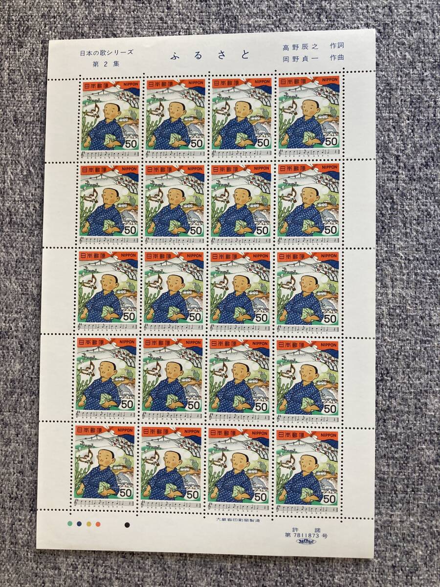 - ★未使用 日本の歌シリーズ 第2集 ふるさと 故郷 作詞 高野辰之 作曲 岡野貞一 1979年 昭和54年 切手シート 50円 20枚 日本郵便