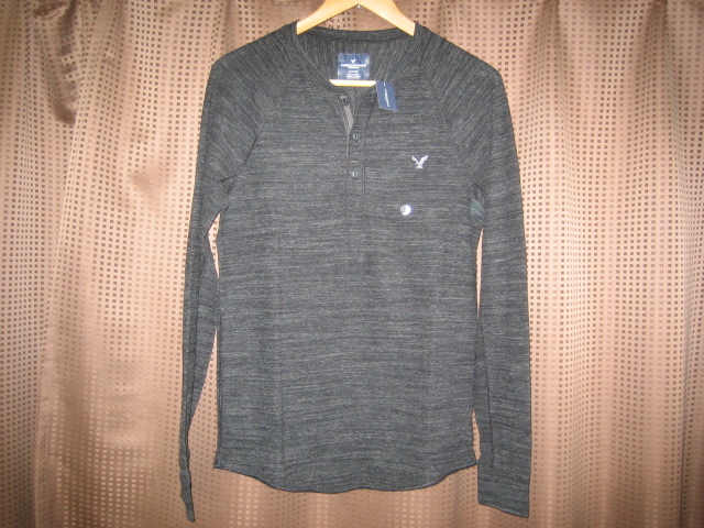 > セール! 残りわずか 正規品 本物 新品 アメリカンイーグル サーマルニット ヘンリー AMERICAN EAGLE ワイルド 筋肉強調 ブラック系 XS ( S