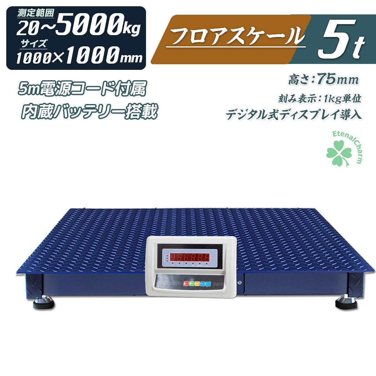 - 【営業所止め】デジタル式フロアスケール5T(5000kg) 内蔵バッテリー LEDディスプレイ 5トン 1000MM 台秤 計量器 スケール 秤 計測機