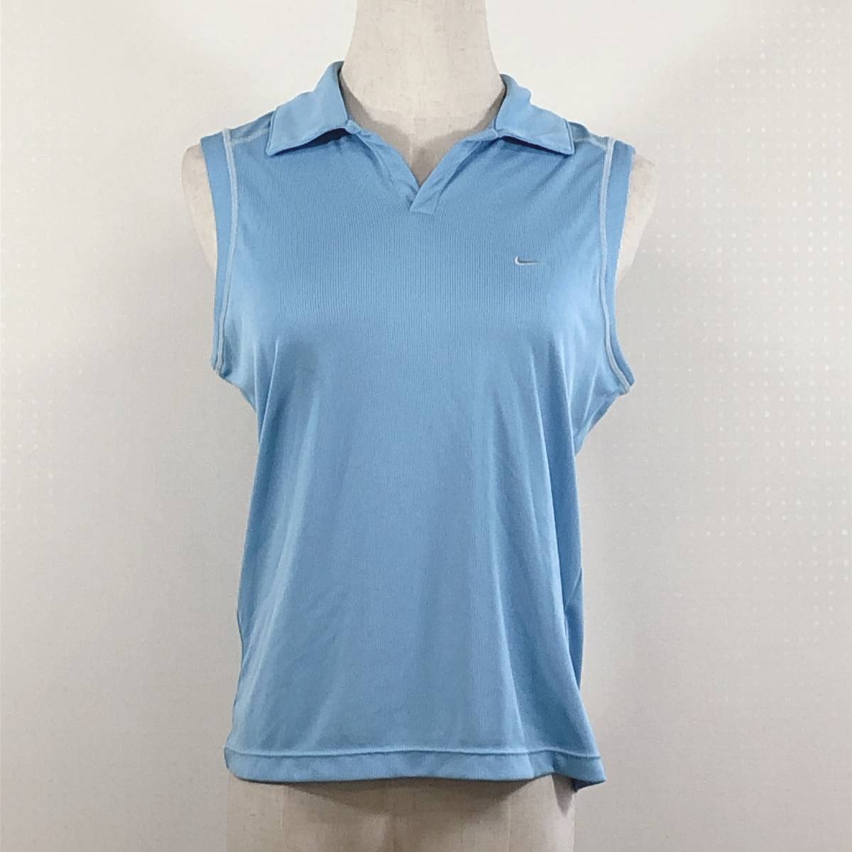 - YZ0015 NIKE ナイキ レディース トップス スポーツウェア 袖無し ノースリーブ 薄手 Lサイズ 水色 ワンポイント刺繍 夏 スポーティ テニス