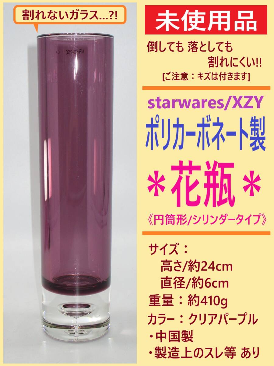 - 未使用 XZY ポリカーボネート製 花瓶 円筒 シリンダー 型 A クリア パープル 紫 花 器 フラワー ベース 高さ24cm 割れない ガラス? 海外製