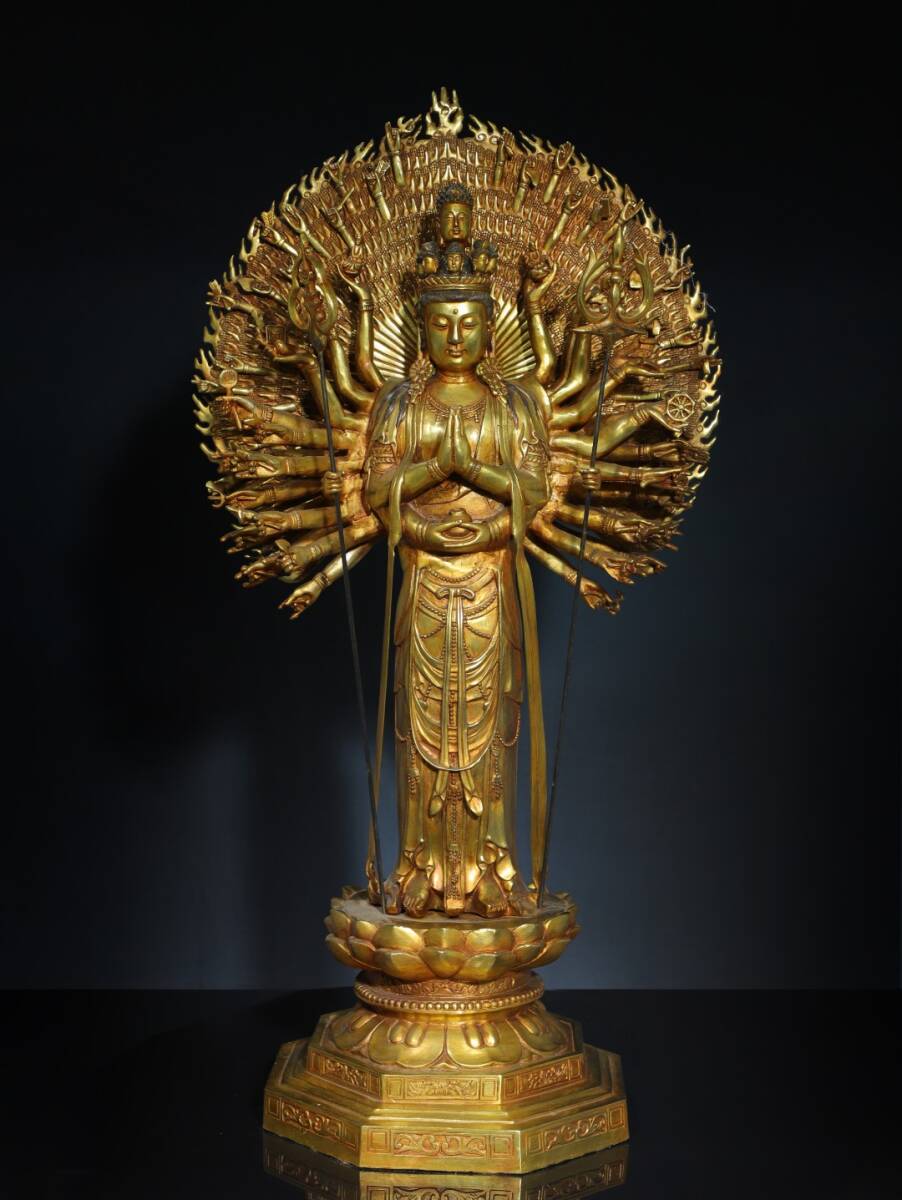 - ◆蔵出◆古美術 中国古玩 明時代 古銅製 銅塗金 千手観音 仏造像 細密細工造 置物 擺件 古賞物 時代物 A01