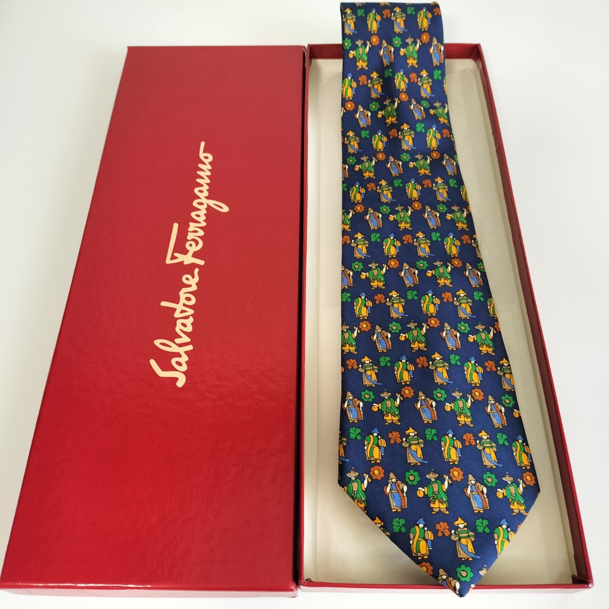 - Salvatore Ferragamo(サルヴァトーレフェラガモ)紺人衣装ネクタイ
