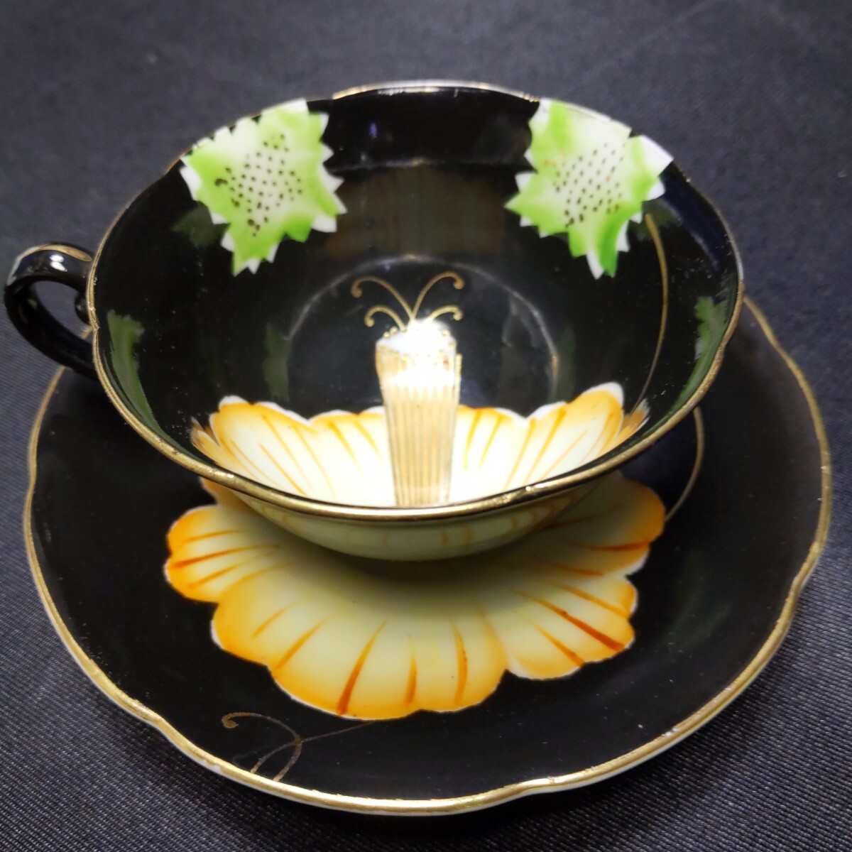 - 267 手書き カップ&ソーサー (オキュパイドジャパン) 金彩 1点もの 1947年から1952年頃 米国占領下時代