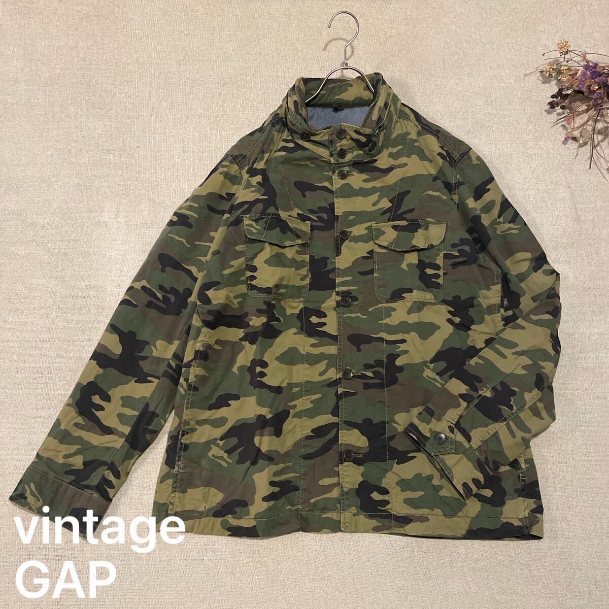 > 古着 GAP ジャケット ミリタリー  カモフラ 迷彩 グリーン 米軍 オールドギャップ USED XLサイズ 美品 長袖 シャツ アウター