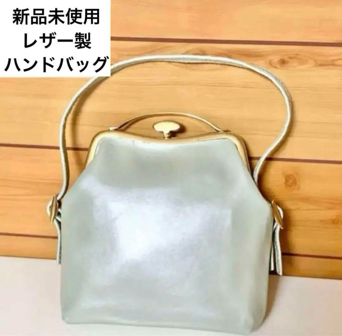 - 匿名配送 牛本革がま口ハンドバッグ メタリックミントグリーン ワンハンドルバッグ トートバッグ 和装バッグ レザー