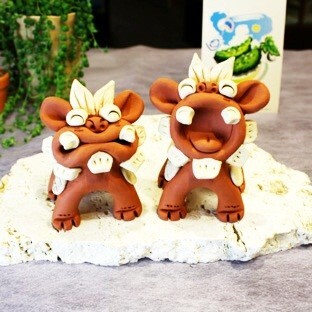 - 沖縄土産 シーサー 置物 ミニ 玄関 ペア にひひシーサー・赤