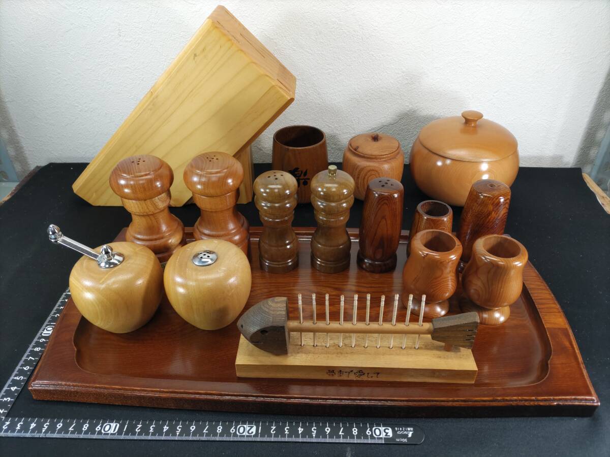 - ■送料無料!■まとめて■ソルトシェーカー&ペッパーミルセット■調味料入れ■楊枝立て■トレー■菓子鉢■包丁立て■木製■大量セット!