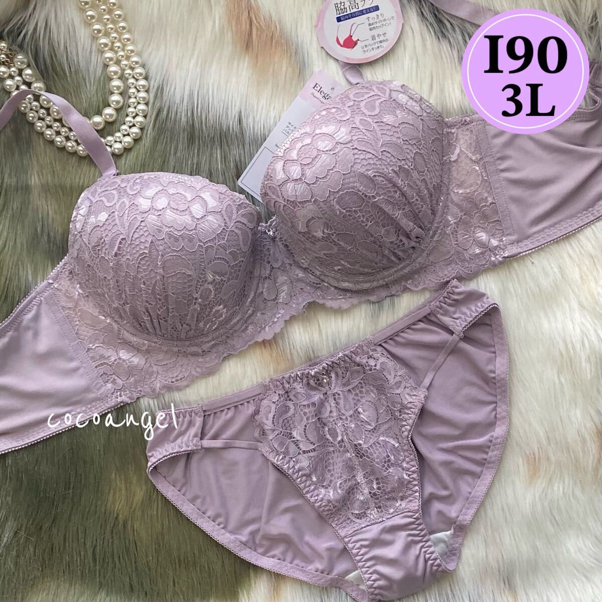 > ラスト【I90/3L薄紫 上下セット】新品 ブラ&ショーツセット ブラジャー ショーツ 脇高 パッド内蔵 レース グラマー Iカップ 大きいサイズ