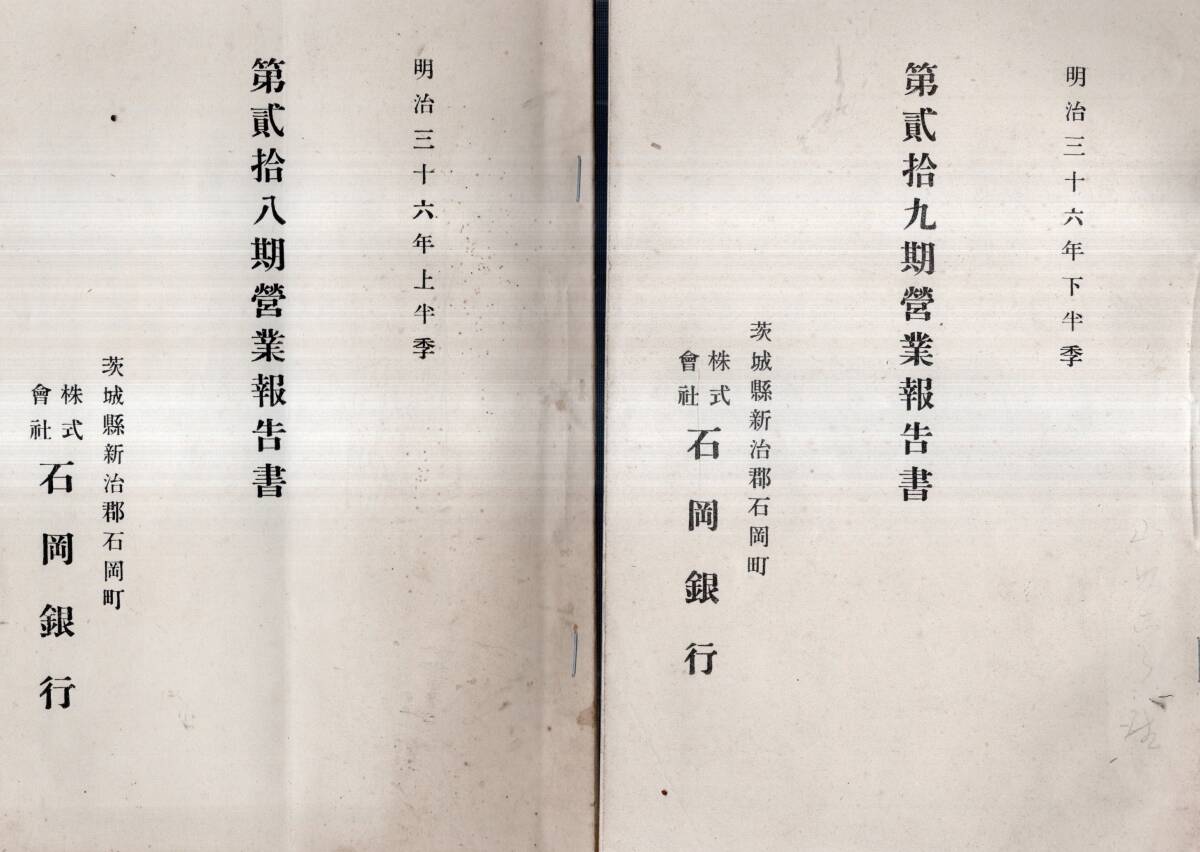 - ※明治36年第28・29期営業報告書(上下季)茨城県新治郡石岡町石岡銀行(付株主名簿) 頭取金子源兵衛・取締役一色宗十郎武石長三郎等金融