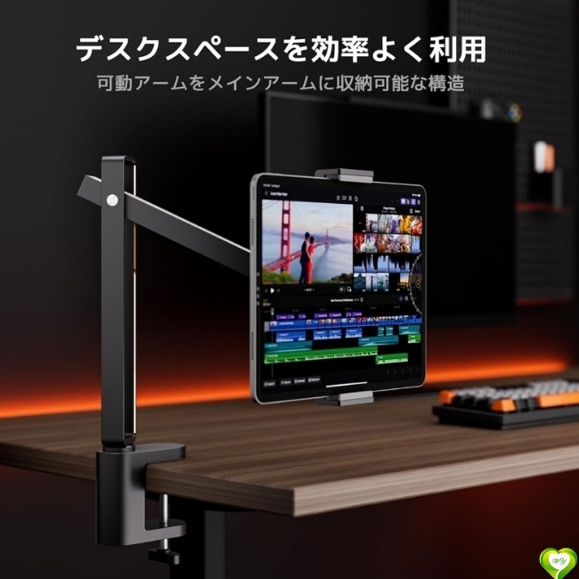 - 【角度調整で作業楽々】タブレット スマホ スタンド アーム 折り畳み式 60度回転 タッチペン収納 5.5~13インチ 縦横 快適 多機能 携帯性
