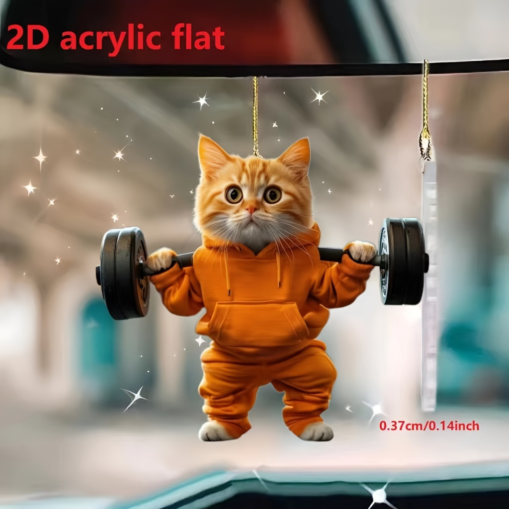 - キーホルダー おもしろ トレーニング 二足歩行 猫 平面 2D アクリル 8cm 大きめ ダンベル ネコ おしゃれ 吊り下げ かわいい ねこ t3330