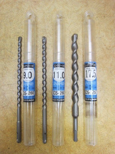 - *送料無料 未使用 サンコーテクノ オールドリル SDS-260 有効長180mm 刃先径9.0 11.0 17.5mm 軽量ハンマードリル用 コンクリート 計3本 29