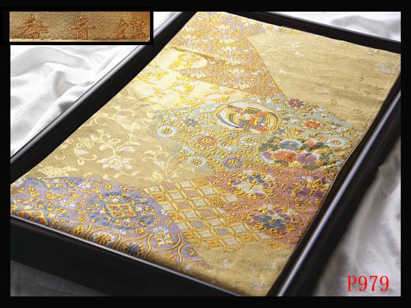- P979西陣逸品 秀貴錦 振袖可 唐草花鳥古典紋 金色地 華やぎの品格 正絹純金糸六通高級美術袋帯 ◇検◇簪着物名古屋帯帯締め