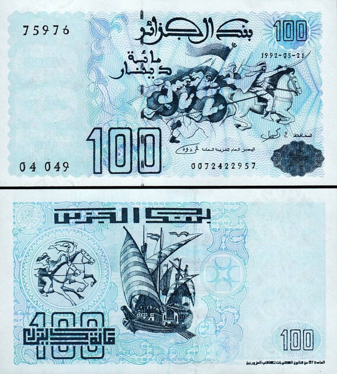 - (B-823) アルジェリア 100ディナール紙幣 1992年 ⑤