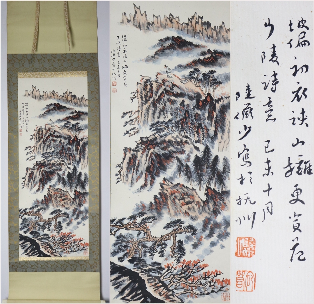 - 古美術 掛け軸 中国・近現代 「陸厳少書」 紙本 【山水図】 立軸 書道 巻き物 肉筆保証 唐物 古画 画心40x104cm LT-241163