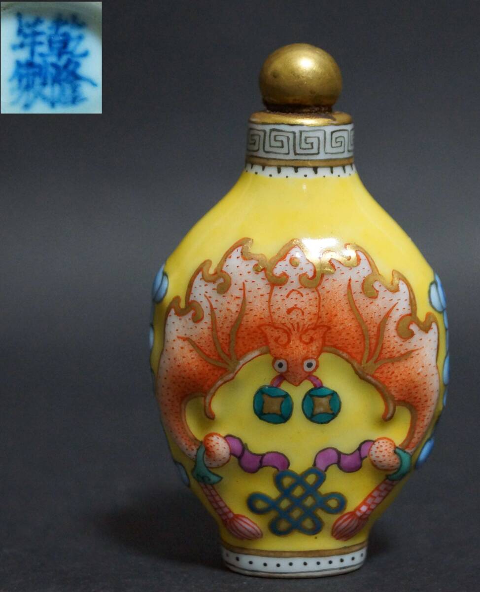 - 【閑】清 乾隆年製 黄地粉彩色絵『福寿祥瑞文』鼻煙壷 嗅ぎタバコ 喫煙具★時代物★6D1108