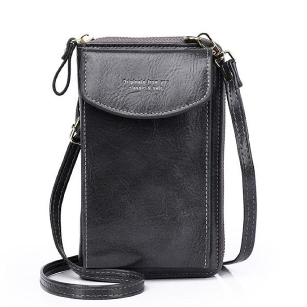 - レディース レトロ スマホ 財布 ショルダー バッグ 肩掛け 斜め掛け PU レザー 合皮(グレー)