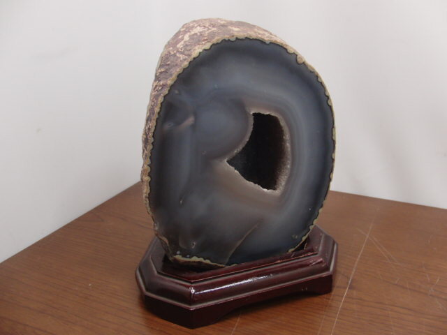 > ◆特大瑪瑙(メノウ)原石 5.9Kg◆トレジャーメノウ 龍穴 ブラジル産◆パワーストーン・金運アップ・ 開運・風水◆台付 管ME-2