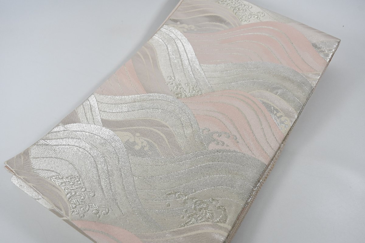 - 袋帯 六通柄 波文 自然文様 銀糸 帯丈428cm ★着物屋 ne-12827 桜庭呉服店