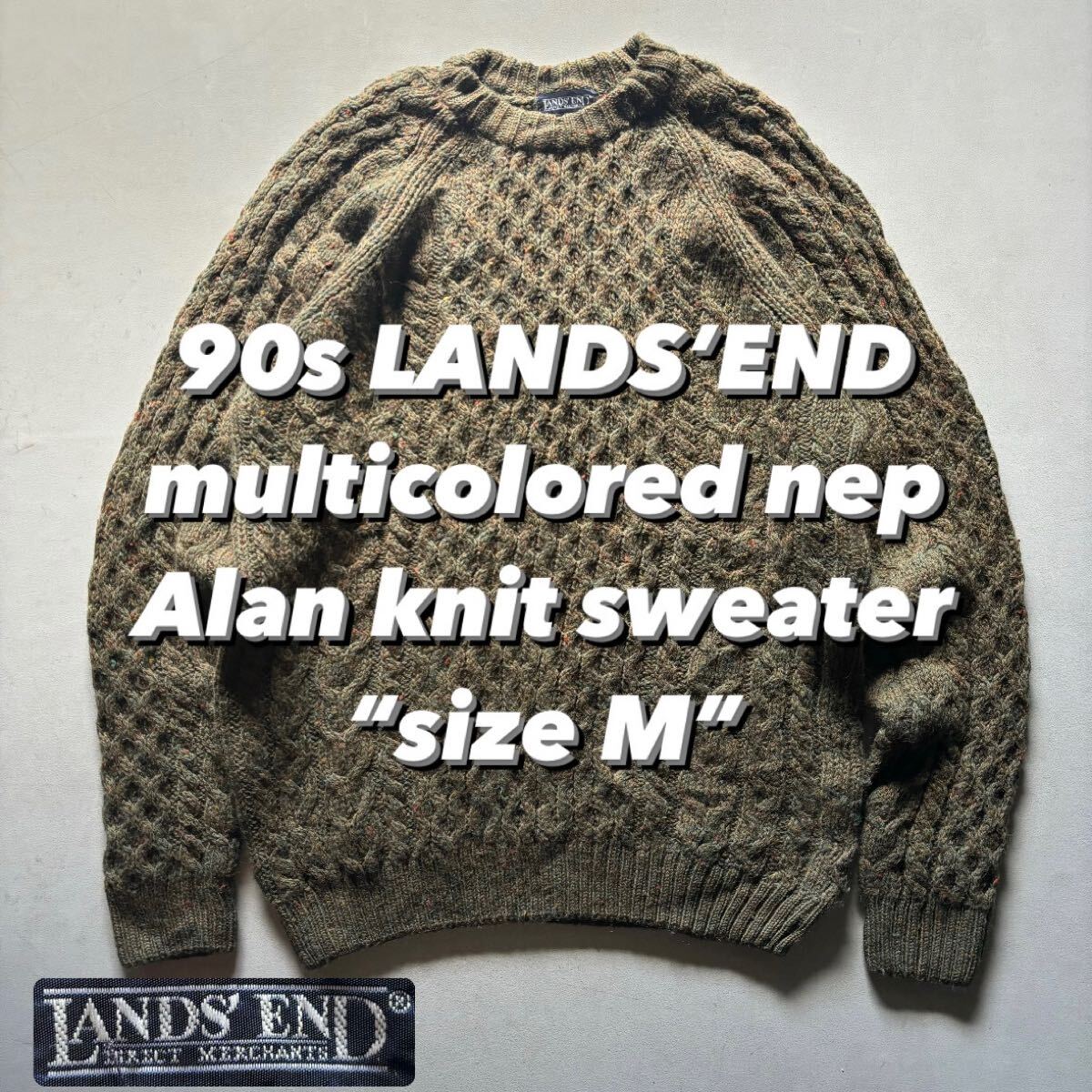 - 90s LANDS’END nep Alan knit sweater “size M” 90年代 ランズエンド マルチカラー ネップ入り アランニットセーター ウール メランジ