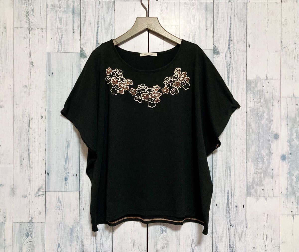 - ◆ほぼ未使用◆ bulle de savon ビュルデサボン 半袖 カットソー ブラック レディース フリーサイズ