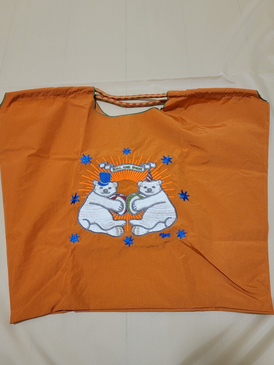 - 刺繍ロープエコバッグ(オレンジ白クマL)ショルダーベルト付き