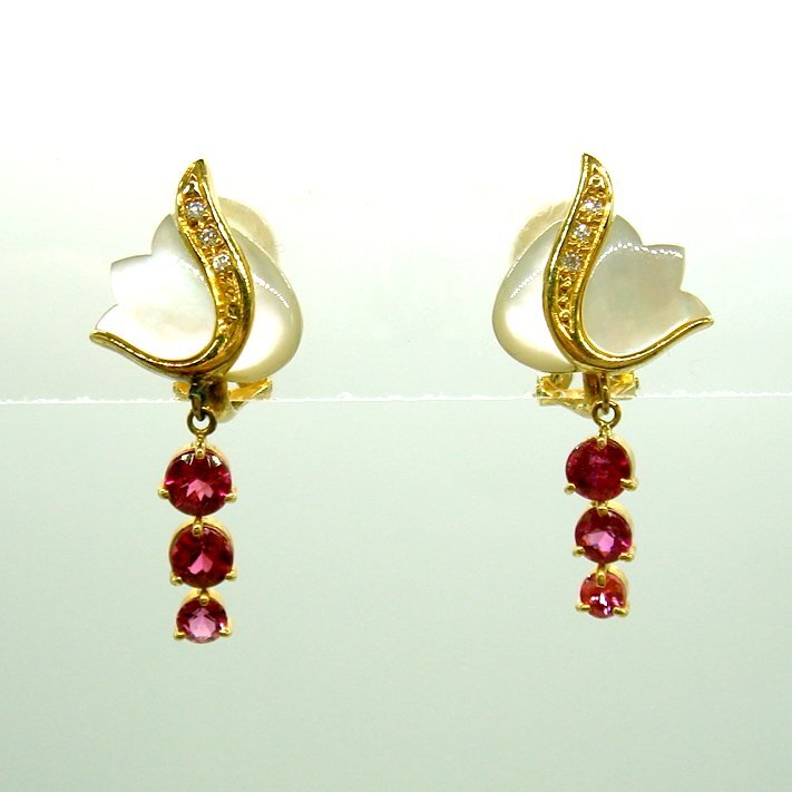 - ER178:K18YG ピンクトルマリン 白蝶貝 ダイヤ クリップイヤリング(ピアス兼用)