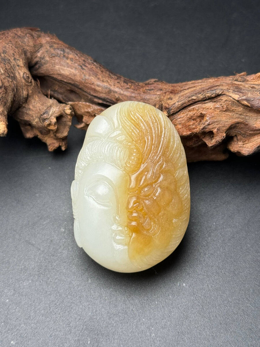- 『清・和田玉細密彫・沁色自然・仏魔一念間・根付・裝身具』極細工 置物 古賞物 中国古玩 中国古美術