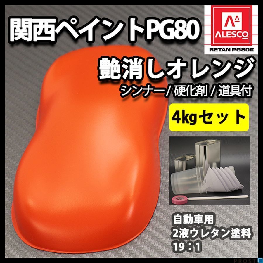 - 関西ペイントPG80 つや消し マット オレンジ 4kgセット / シンナー 硬化剤 道具付 Z26