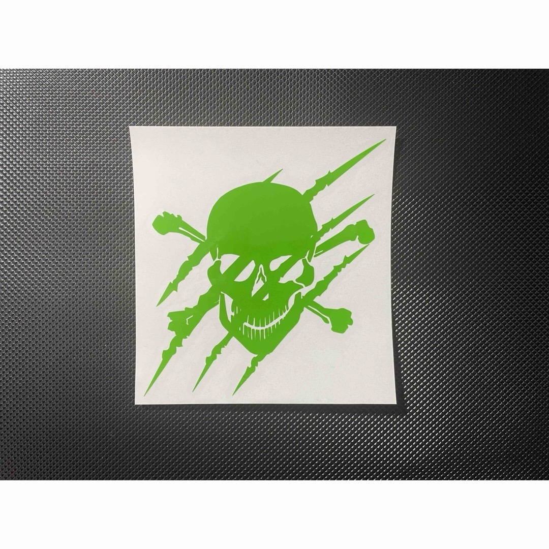 - ドクロ どくろ 骸骨 スカル 爪痕 傷 カッティングステッカー シール ライムグリーン