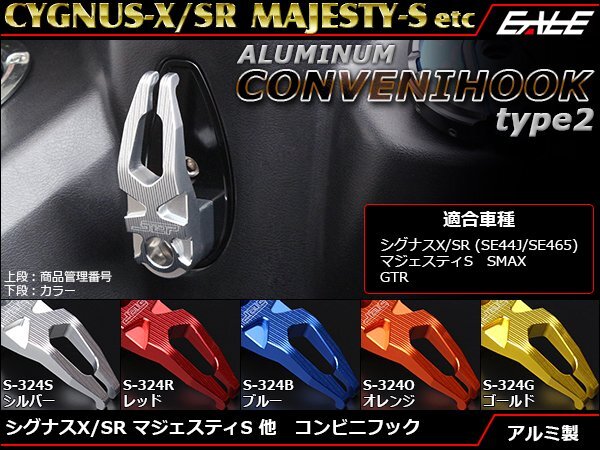 > シグナスX SR(2・3代目 SE44J・465他) マジェスティS アルミ削り出し コンビニフックtype2 足元をドレスアップ オレンジ S-324O