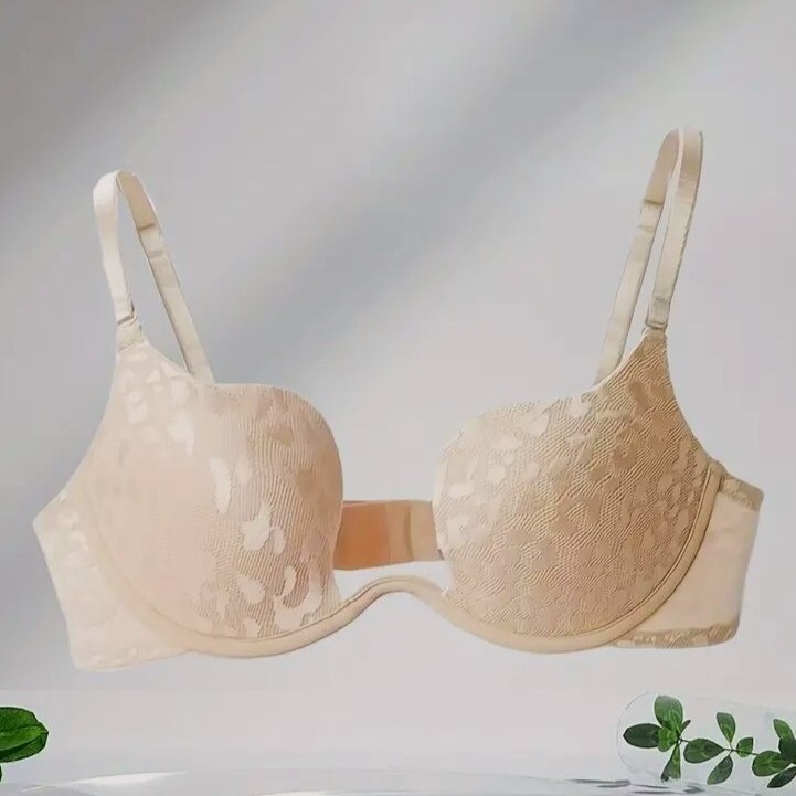 - 【新品】B85 U字型ワイヤー入り プランジブラ★210k.レオパードプリント ベージュ モールドブラジャー