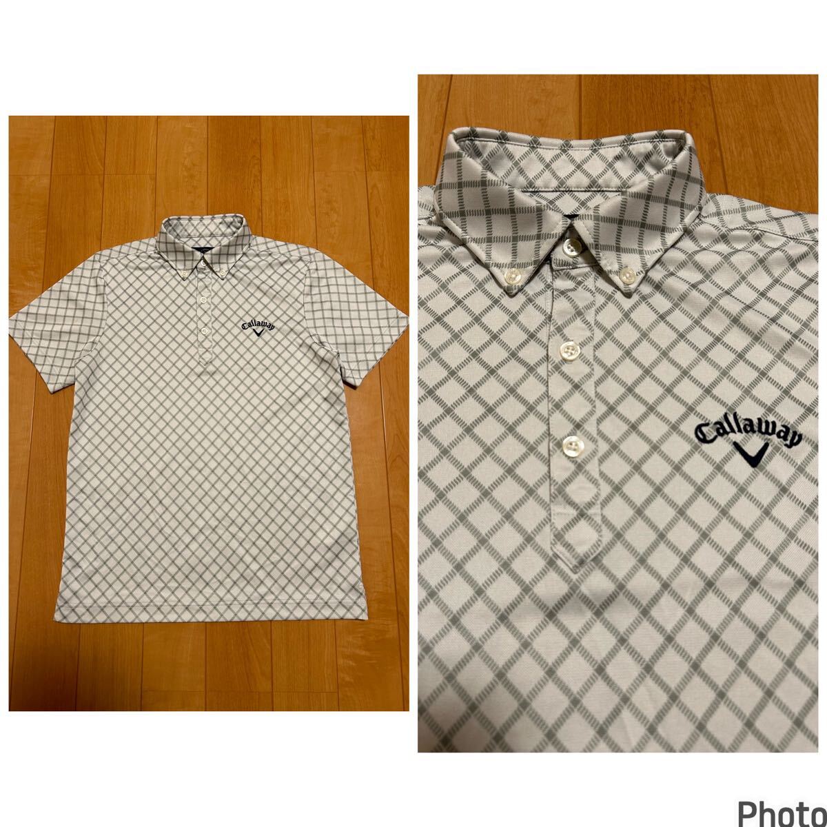 - 良品☆Callaway/キャロウェイ メンズサイズM 快適速乾ドライ.半袖BDポロシャツ 両面ロゴマーク刺繍入・ダイヤ.菱形チェック柄総柄デザイン