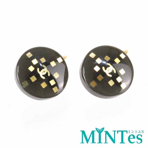 - Chanel シャネル ココマーク イヤリング ブラック×ゴールド GP×プラスチック レディース 女性 アクセサリー ワンポイント アクセント