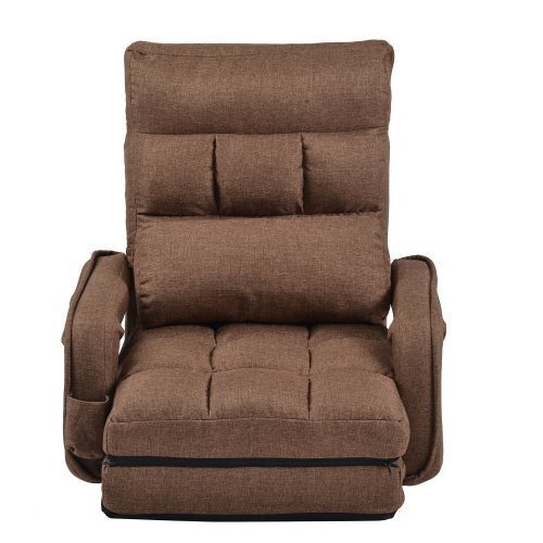 - 座椅子 リクライニング 14段ギア リクライニングチェアー ファブリック 座イス おしゃれ 椅子 チェアー いす イス コンパクト【ブラウン】