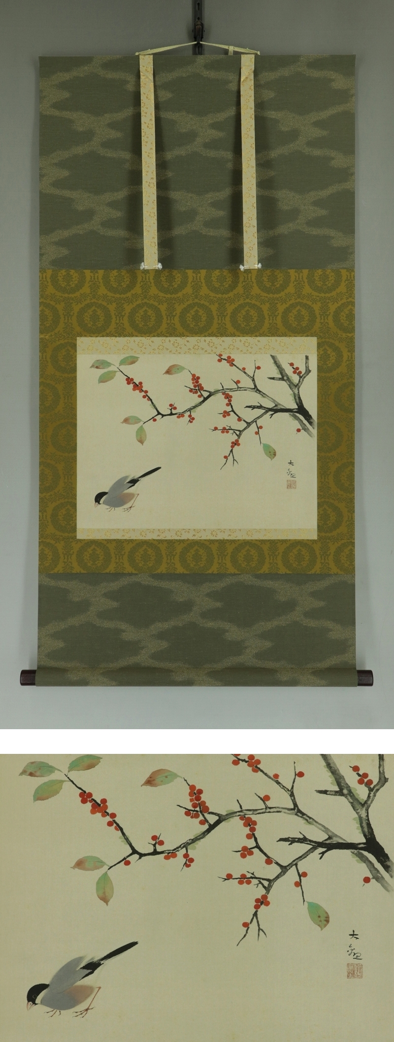 - 【巧芸】横山大観【花鳥図】◆絹本◆合箱◆改装済掛軸 1503055