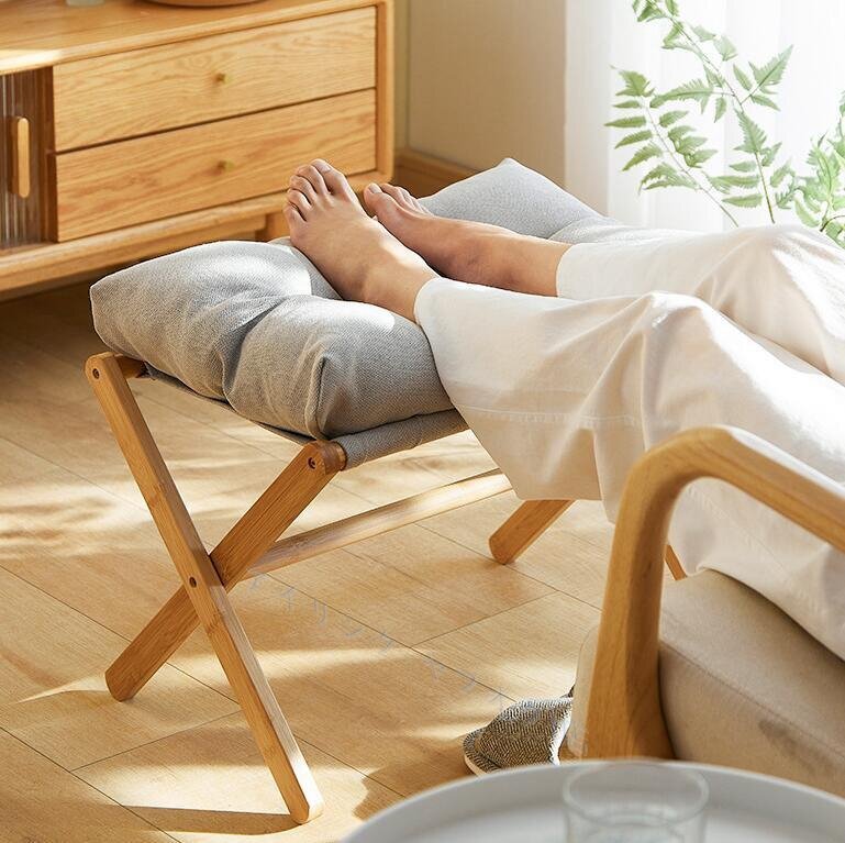 > ☆新品スツールオットマン 折りたたみ 足置き台スツール 竹製 低い腰掛けクッション付きふわふわ取り外し可能洗えるカバー玄関寝室椅子