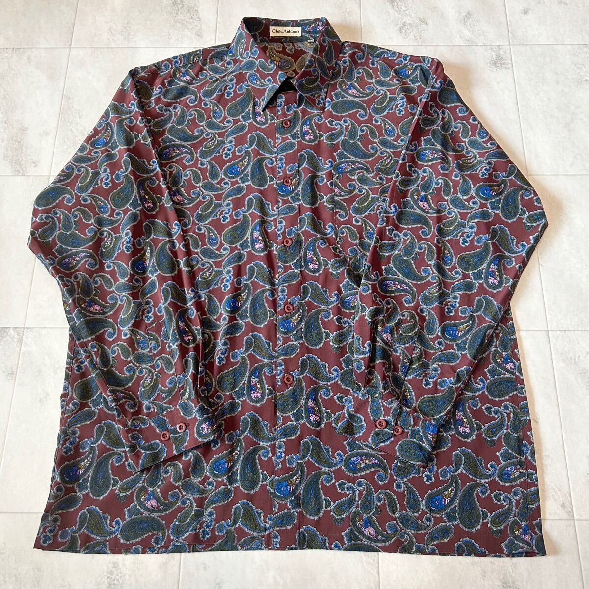 > Chez Antonie 総柄 柄シャツ ペイズリー 花柄 レトロ アート ビンテージ 長袖シャツ ポリエステル100%