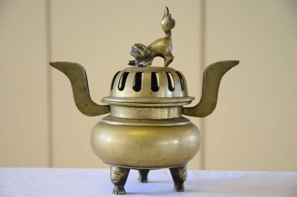 1.真鍮 獅子摘双耳三足香炉になります