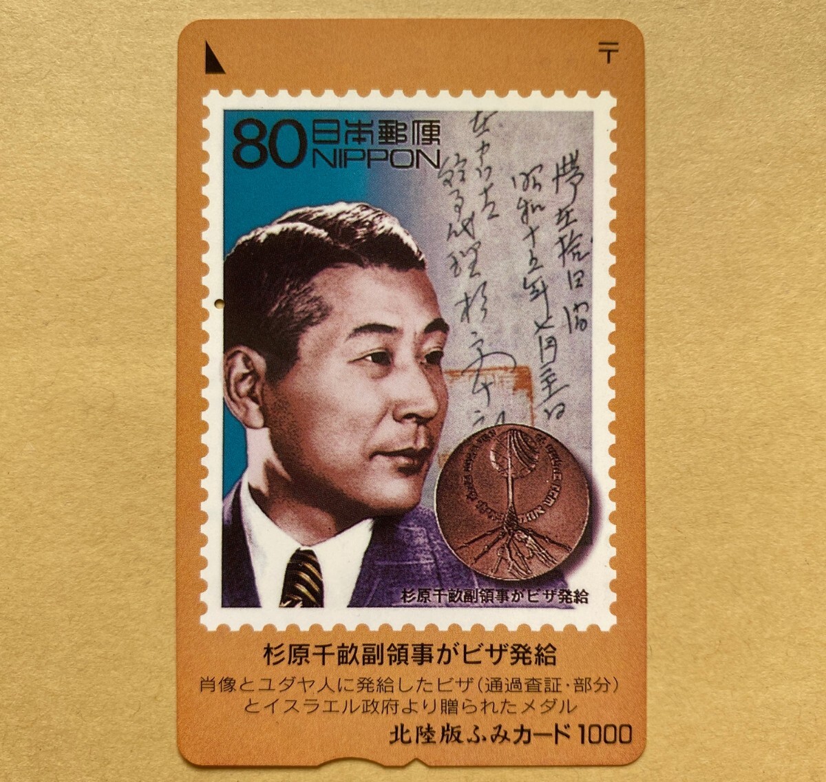 - 【使用済】 ふみカード 北陸版 杉原千畝副領事がビザ発給 肖像とユダヤ人に発給したビザ(通過査証)とイスラエル政府より贈られたメダル