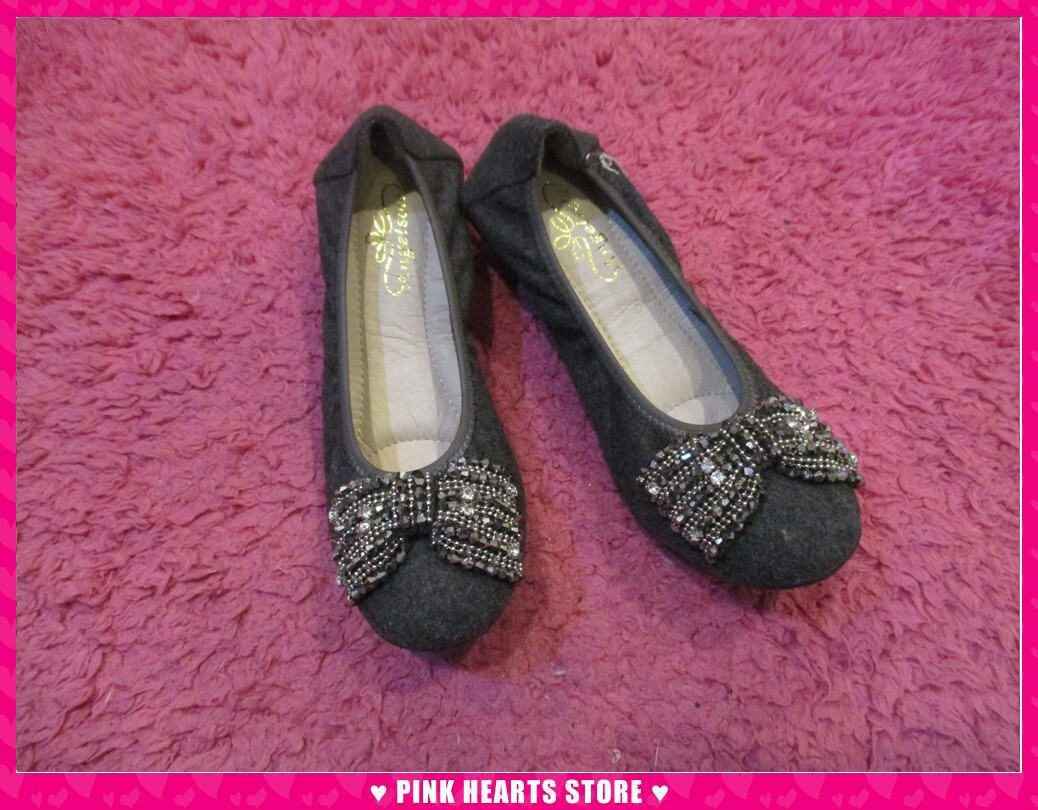 - 新品レディース靴◇値下げ!!ビジューリボンバレエシューズ グレー M 68-284
