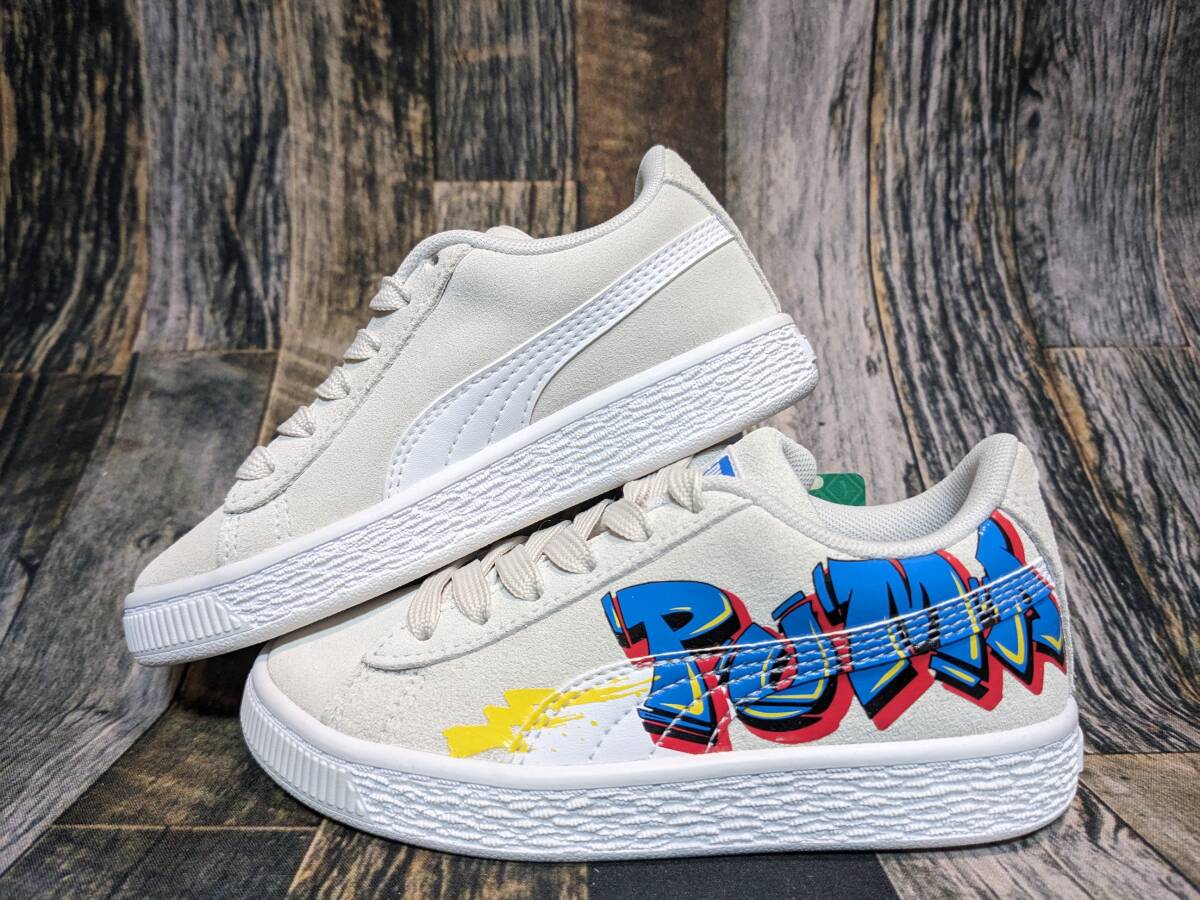 > 17cm PUMA キッズ スウェード ストリート アート PS 検 本革 スニーカー 男の子 女の子 ボーイズ ガールズ ホワイト/ブラック/白/黒 US11C