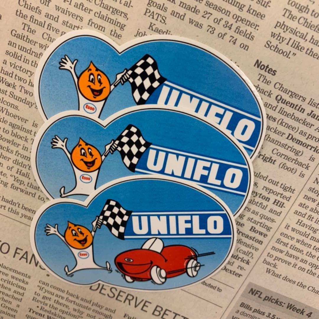 - ステッカー 3枚 セット / ESSO UNIFLO エッソ エッソボーイ アメリカン雑貨 シール 防水 車 バイク レーシング キャラクター ガソリン USA