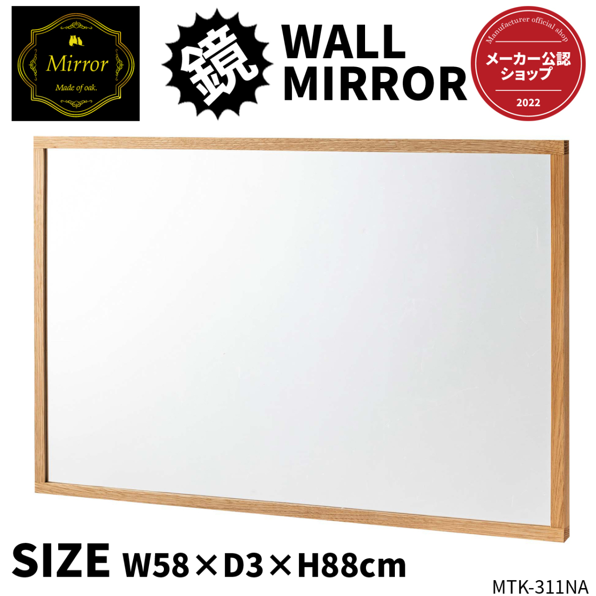 - ウォールミラー 鏡 壁掛け 木製フレーム 天然木 オーク 北欧 MTK-311NA AZ